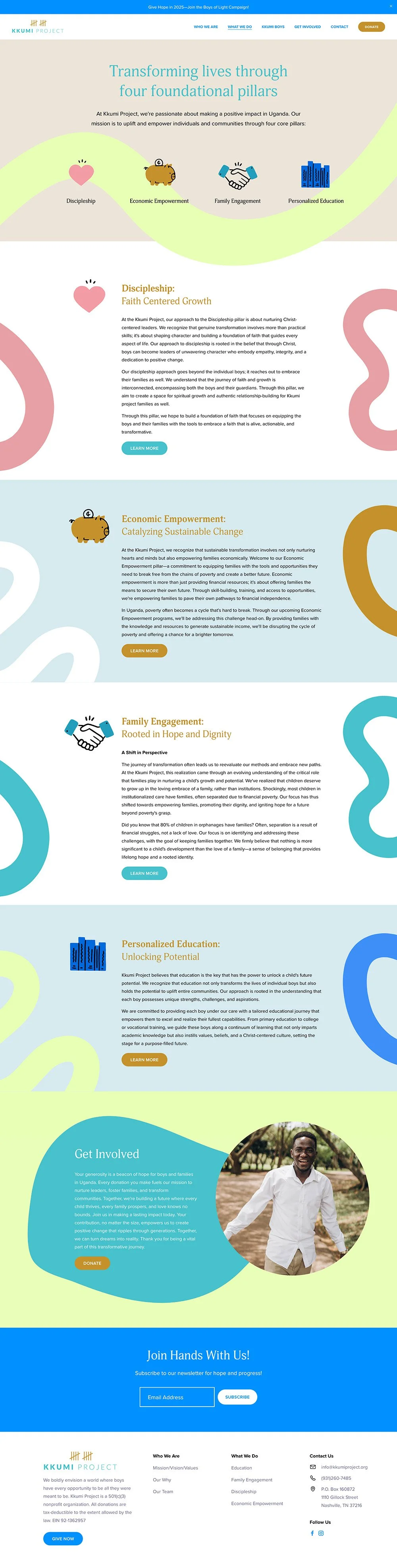 I designed and developed a Squarespace website that highlights Kkumi Project’s mission with warmth, clarity, and empathy. The site prioritizes storytelling, donor engagement, and clear pathways to get involved, ensuring visitors can easily learn about the cause and support its ongoing initiatives.